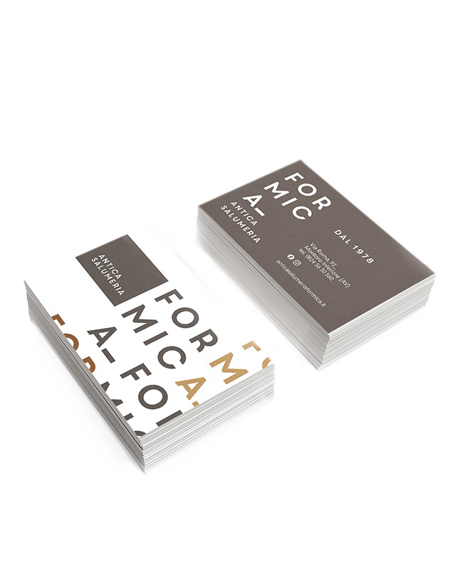 La ricerca del naming e lo studio del marchio ispirati dall’attività tradizionale, guardano inevitabilmente ai progetti futuri. Se la presenza storica, la tradizione e la famiglia si trasformano nel naming Antica Salumeria Formica, il marchio risponde alle future esigenze commerciali della brand identity.