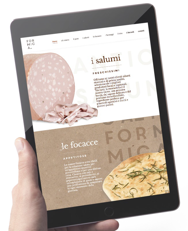 One page, sviluppato con tecnologia responsive, facilmente consultabile da smartphone, tablet e dispositivi mobili, il sito web è la vetrina virtuale di Antica Salumeria Formica, un carosello di immagini in cui perdersi e assaporare con gli occhi le prelibatezze gastronomiche dei prodotti.