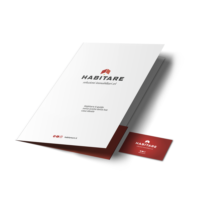 Il logo, strutturato, stabile, ricco di personalità, infonde professionalità, fiducia e competenza, valori che i consulenti di Habitare trasmettono ai propri clienti, mentre nel pittogramma è ben visibile il profilo stilizzato di una casa. Geometrico, squadrato, solido, il lettering scelto è versatile, visibile e sempre ben definito su tutti i materiali di comunicazione, cartacei e digitali.
