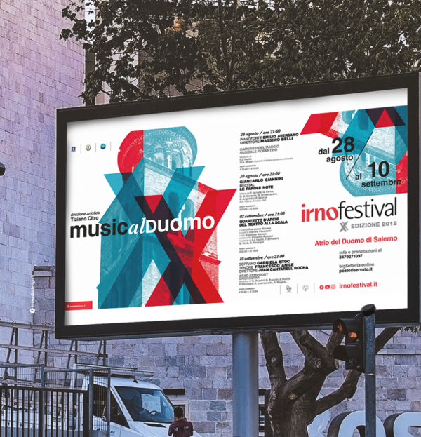 Musica, storia e design si fondono in una visione progettuale tesa a celebrare la XX edizione dell’Irno Festival, la kermesse musicale salernitana dedicata alla musica, alla lirica e al teatro. Come note sul pentagramma disposte per suonare in armonia, le sovrapposizioni, i contrasti ritmici e le tonalità cromatiche del concept creativo raccontano la musica, la poesia, le sinfonie e le sensibilità artistiche del festival diretto dal maestro Tiziano Citro. Dualità che si incontrano, si respingono, si tendono e suonano un’unica grande melodia.