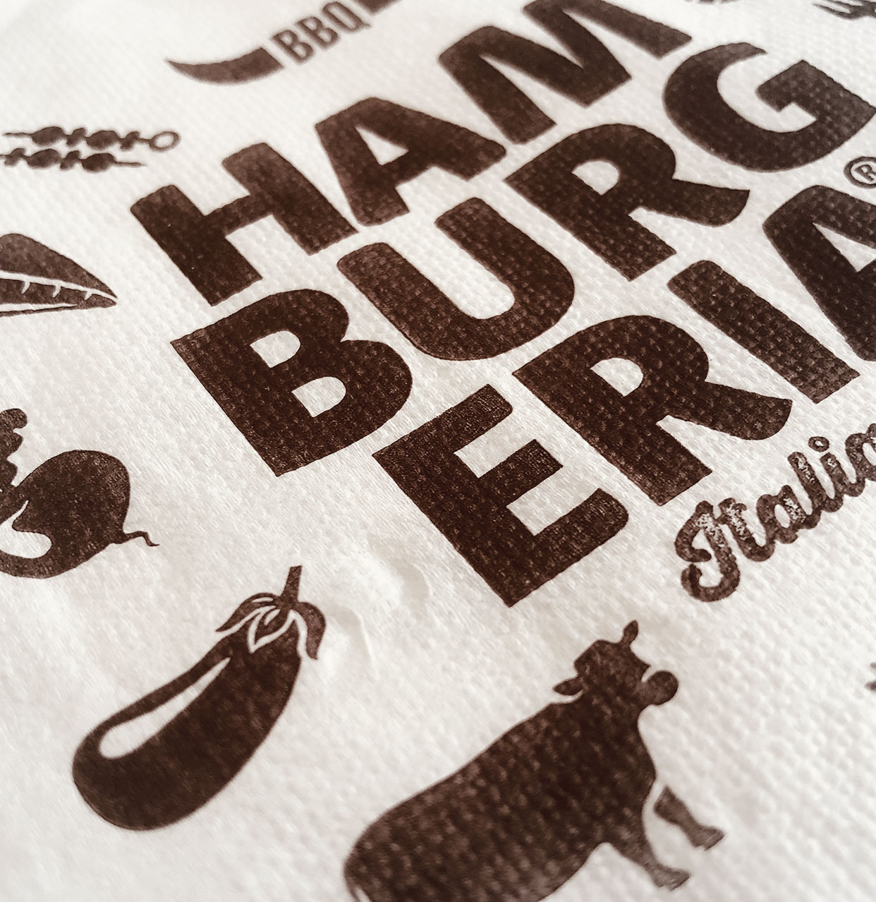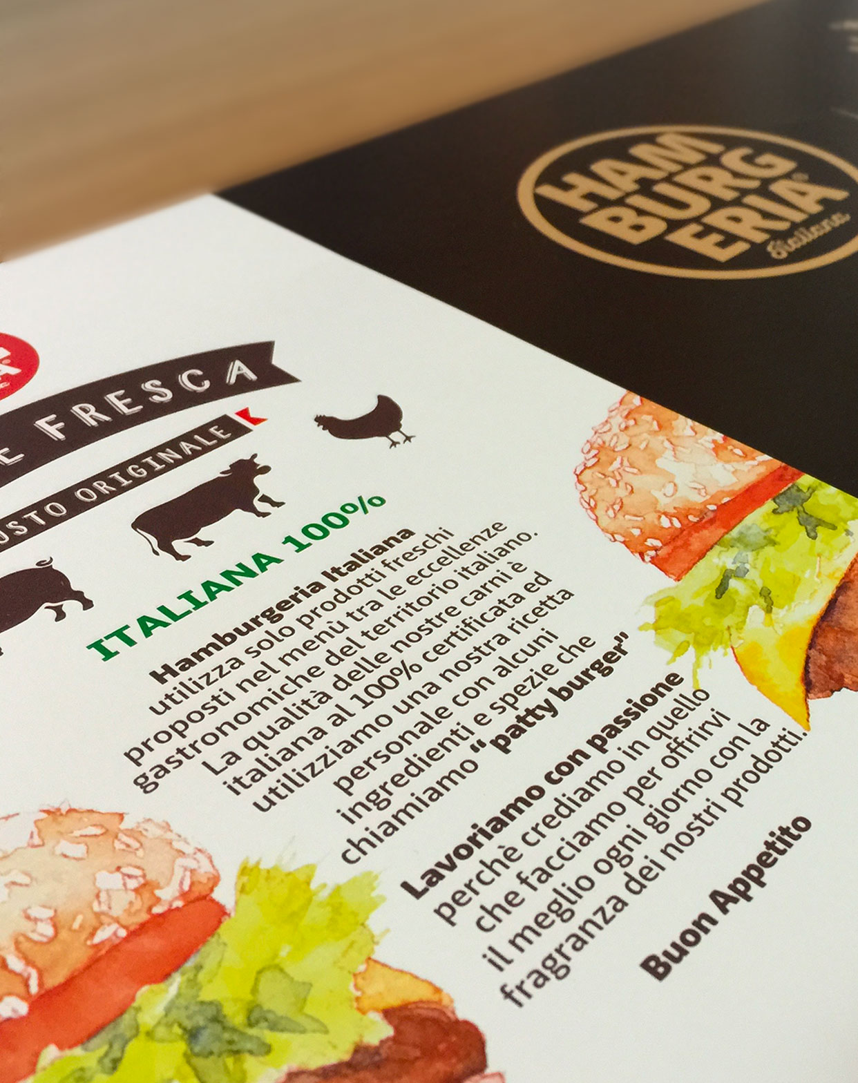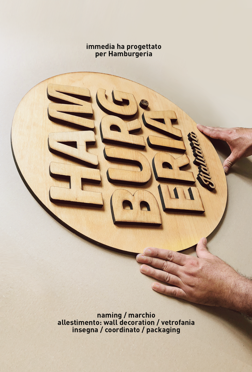 L’attività di brand naming ha esplorato parole chiare dirette e facili da memorizzare, espressione dell’essenza dell’attività. Nasce da qui “Hamburgeria”, nome evocativo di bontà, semplice, forte, chiaro, immediato che solletica il palato, riempie la bocca, stuzzica l’appetito. L’aggettivo “Italiana”, inoltre, conferma la provenienza della carne impiegata per i panini, 100% italiana e certificata. Un nome che identifica con chiarezza l’attività del cliente, rendendo più semplice la progettazione del marchio.