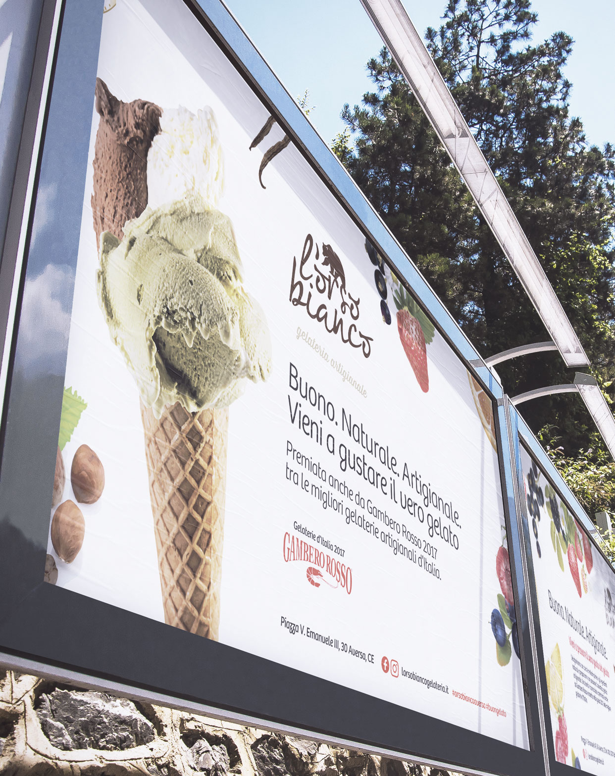 Immagine molto vicina al cliente, l’orso bianco è simbolo di chi riesce ad affrontare le criticità della vita in modo propositivo. Per questo motivo è stato scelto come nome del laboratorio artigianale di gelateria.