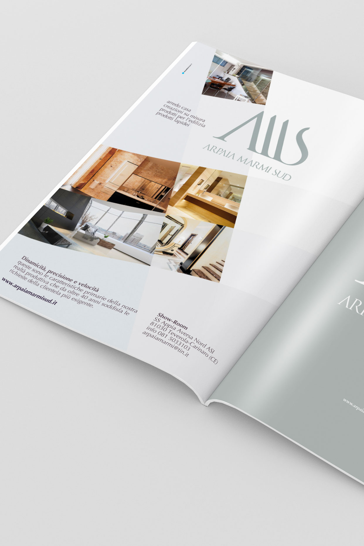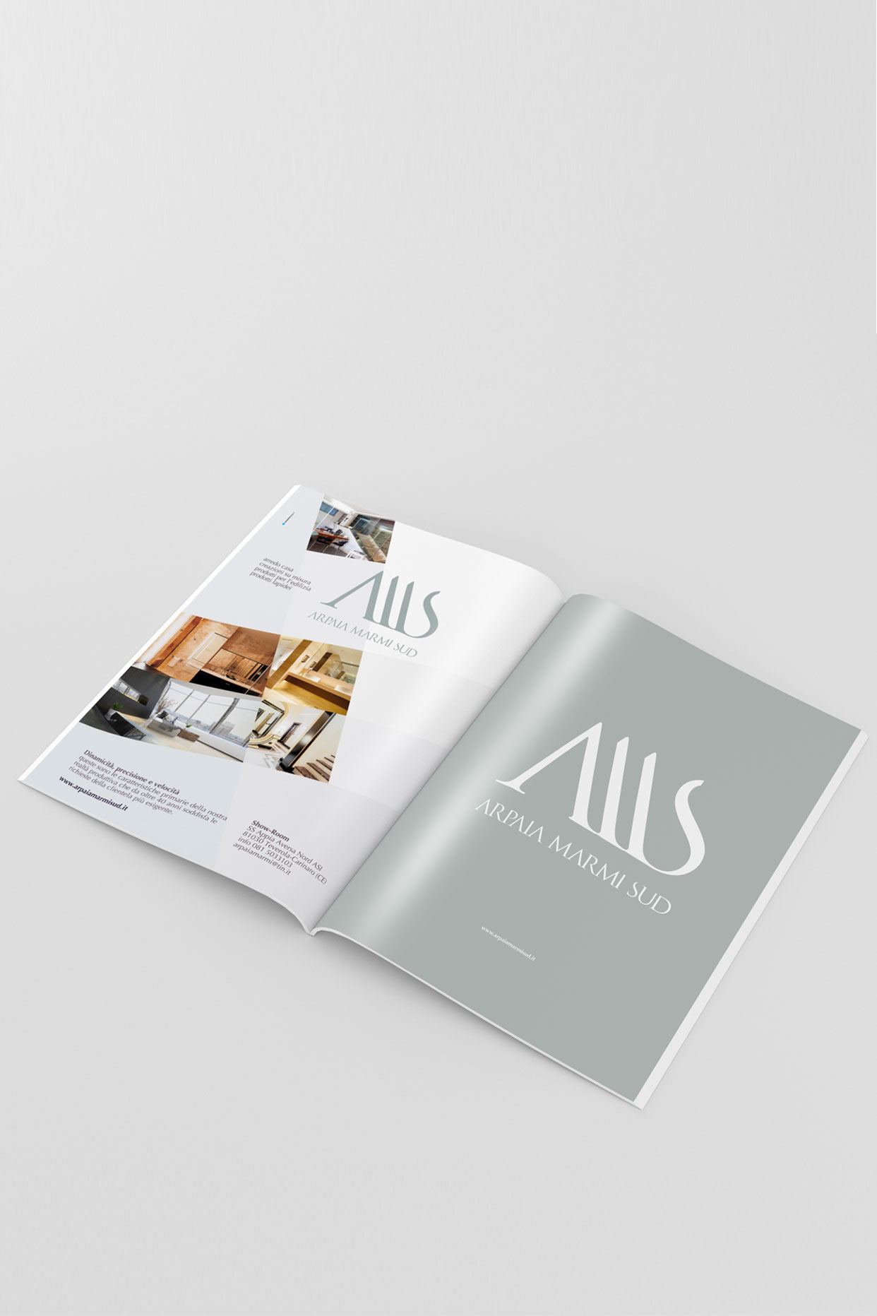 Per Arpaia Marmi Sud, società che opera nella lavorazione del marmo, graniti, pietre ed affini, lo studio del marchio si è ispirato alla materia prima lavorata: il marmo.