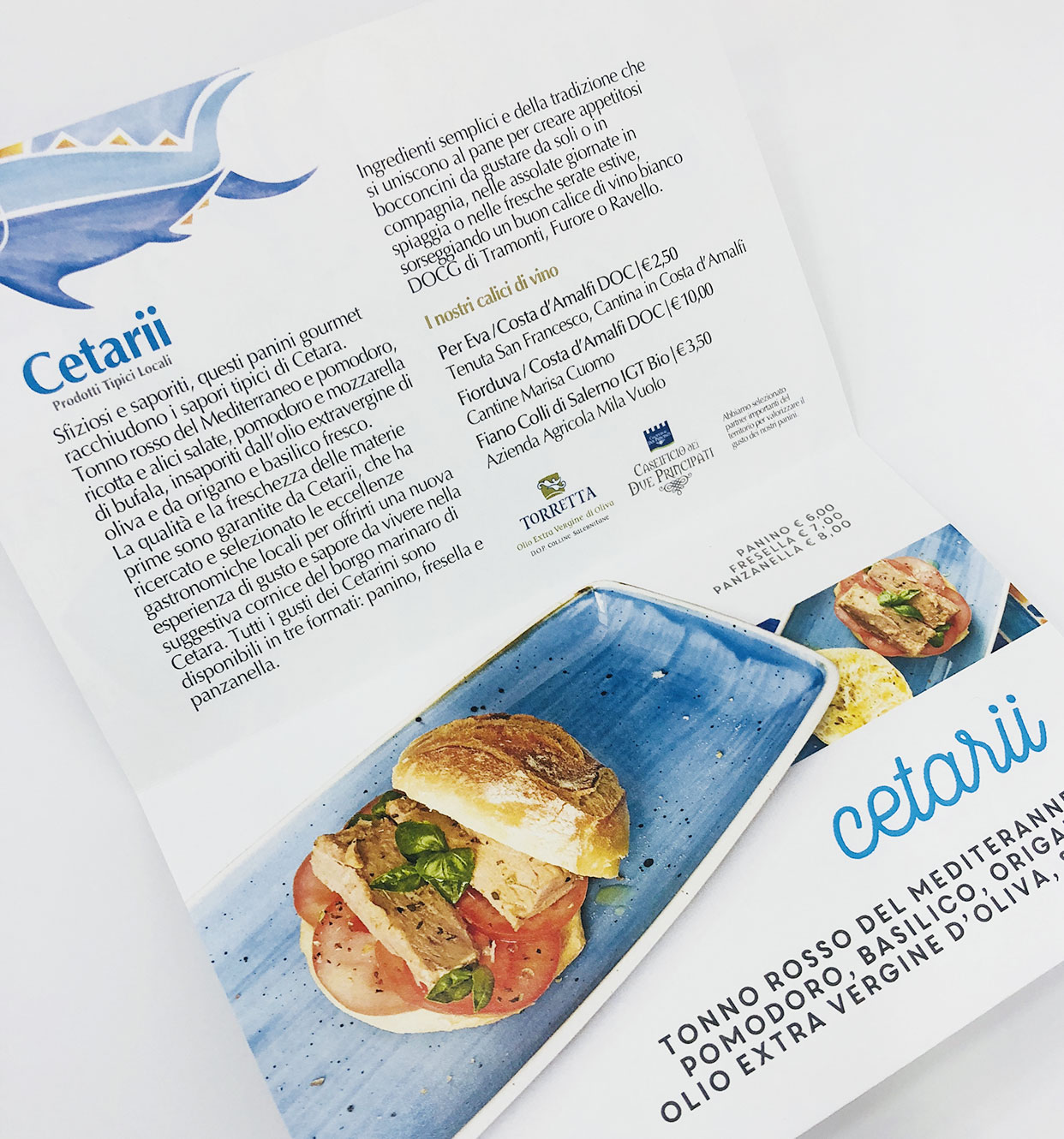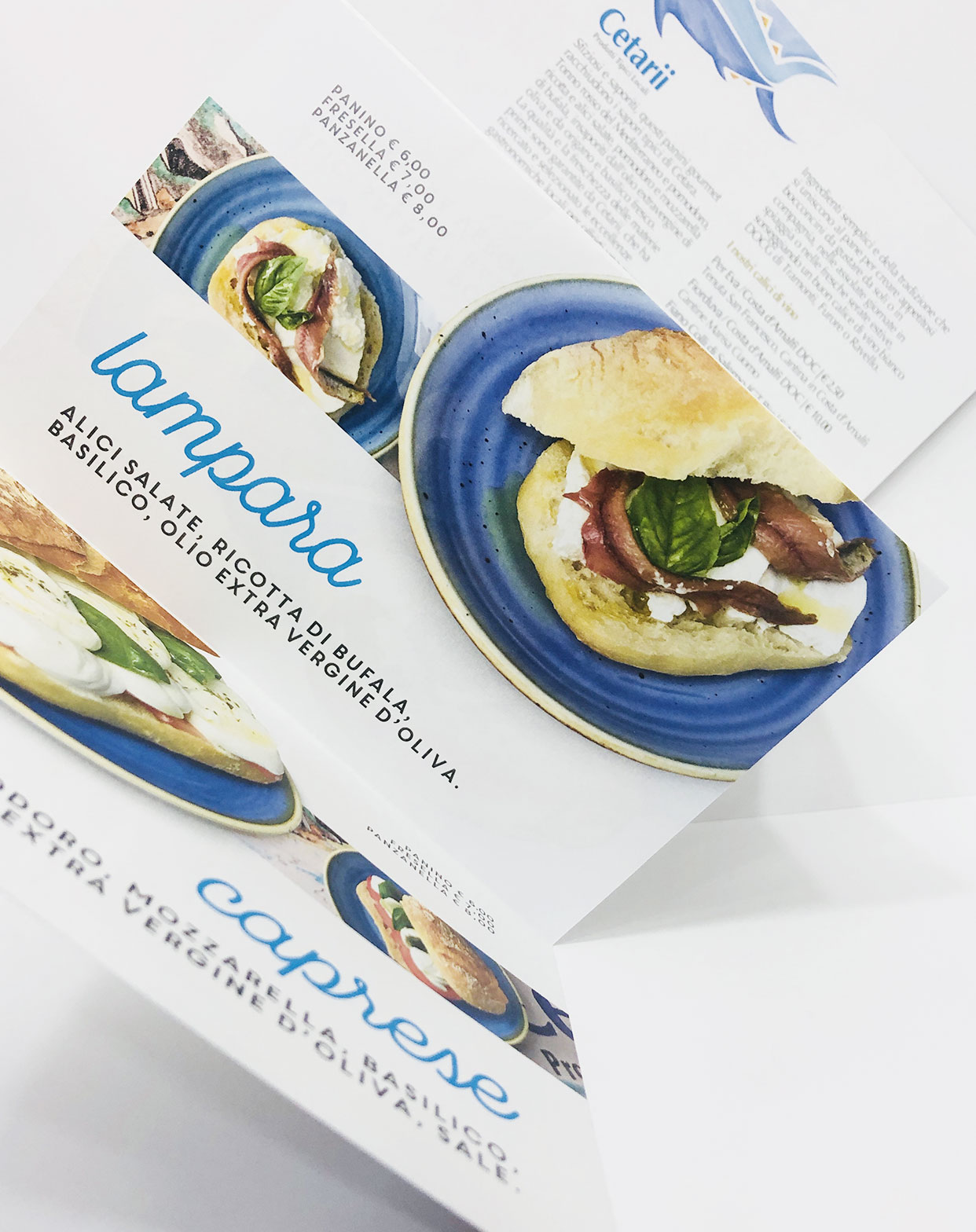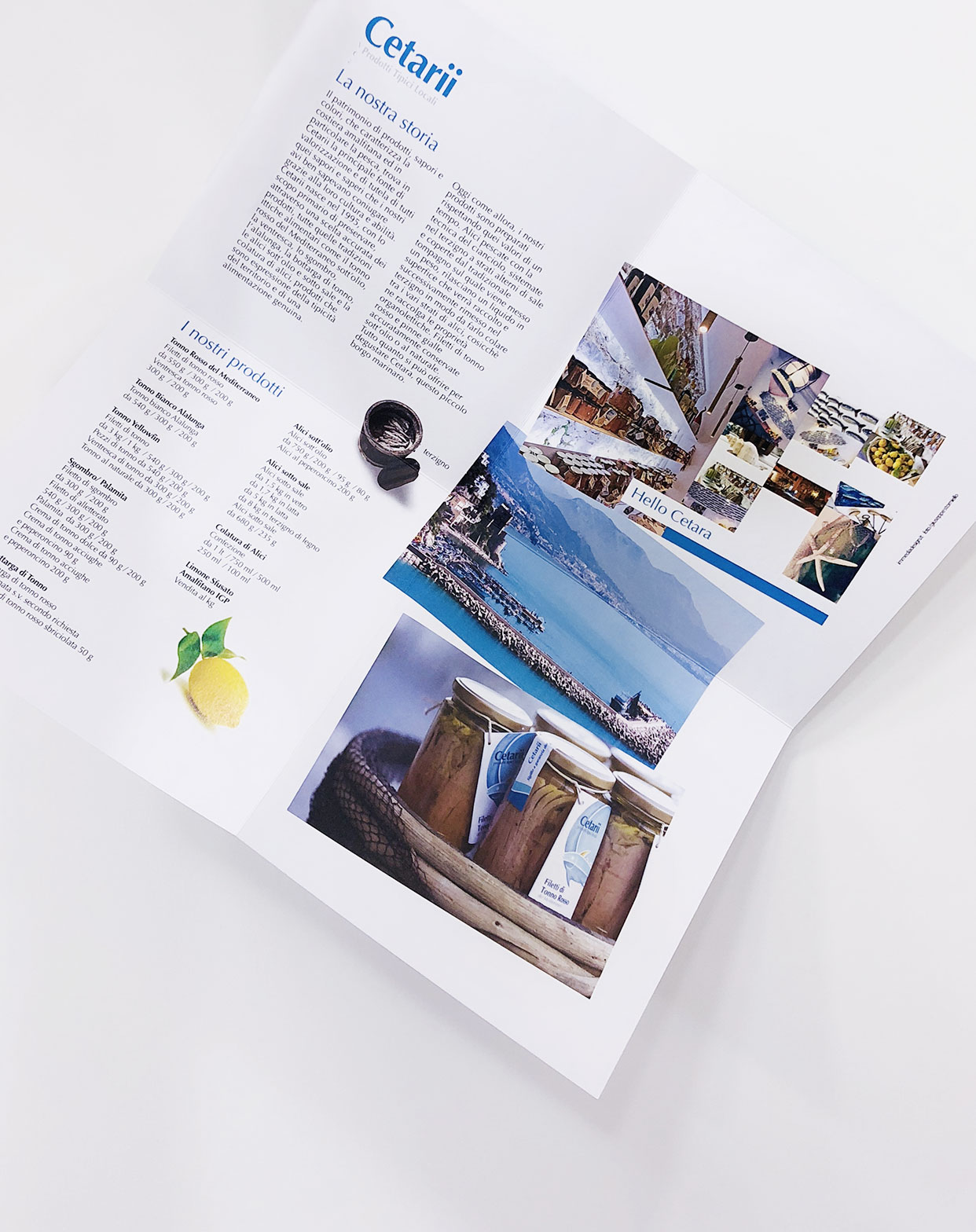 Queste premesse hanno ispirato la scelta del naming e lo studio del marchio per una piccola bottega artigianale situata nel cuore del villaggio marinaro, che si impegna a preservare e far conoscere i prodotti tipici di Cetara e del Mediterraneo.