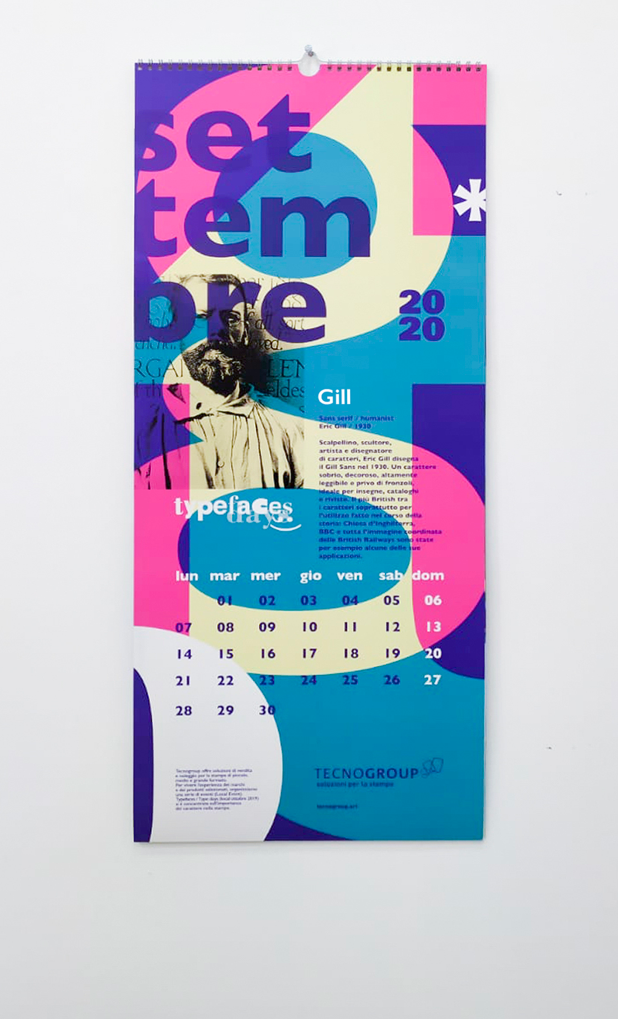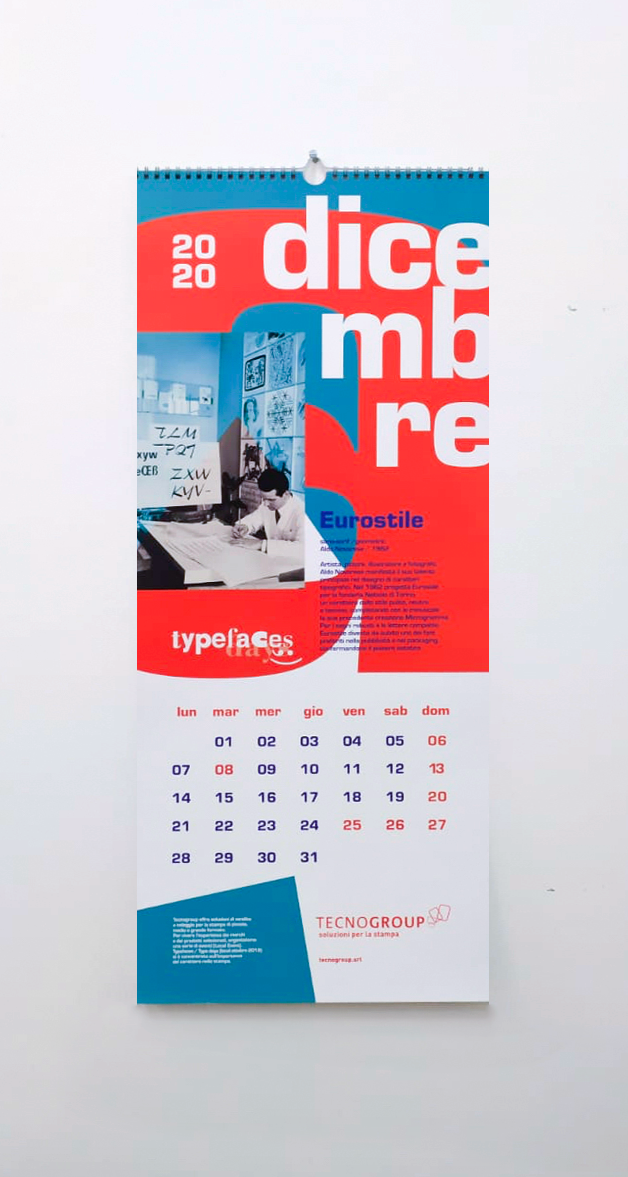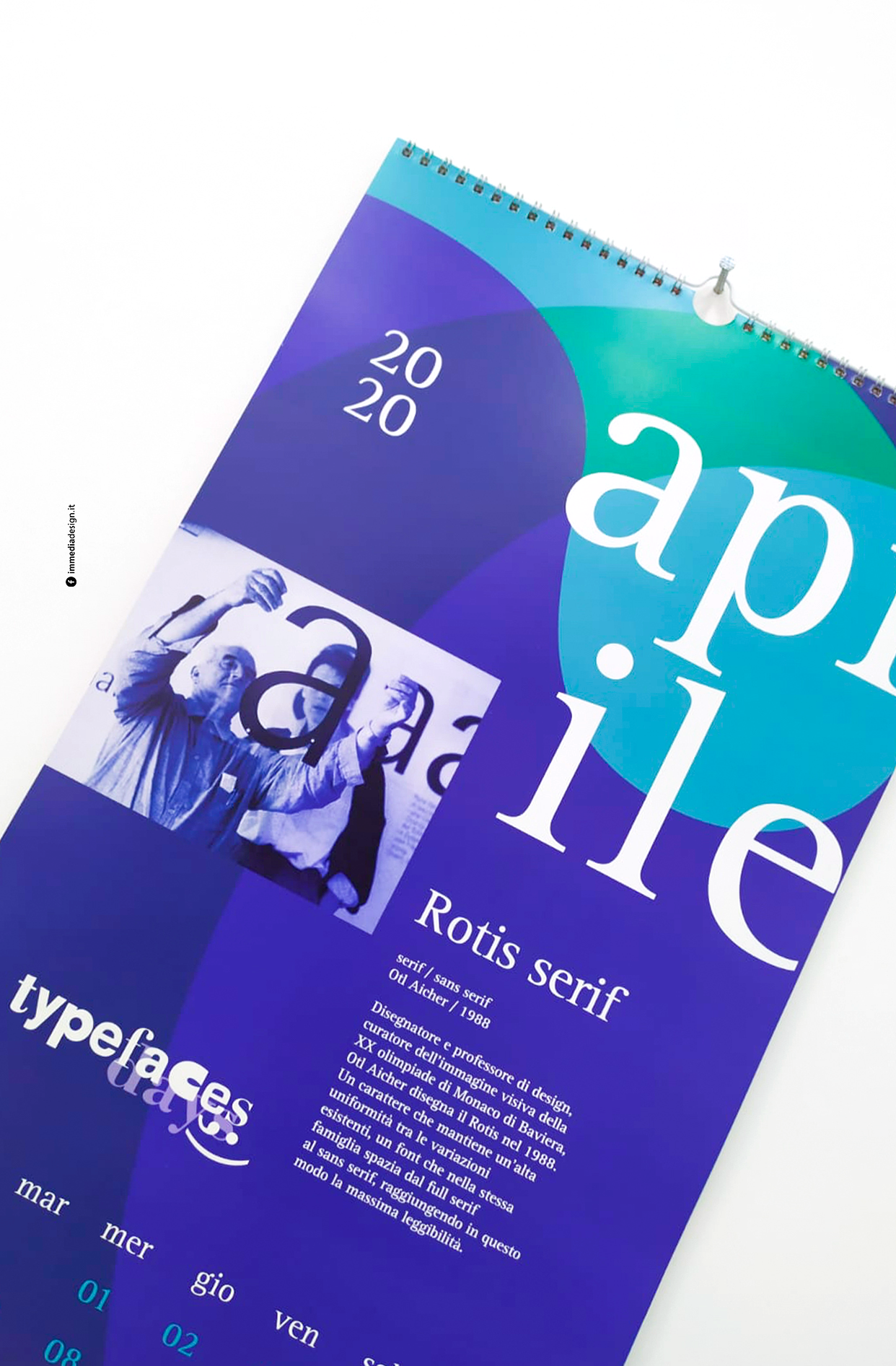Per la progettazione del calendario, i mesi raccontano le storie di alcuni font e dei loro designer rivoluzionari nella storia delle parole disegnate.