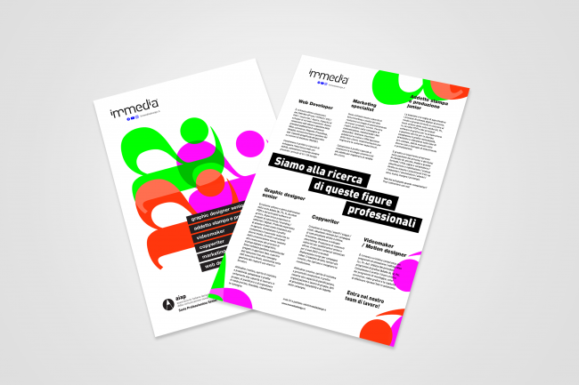 Web developer / Marketing specialist / Graphic designer senior / Addetto stampa e produzione junior / Copywriter / Video maker / Motion designer