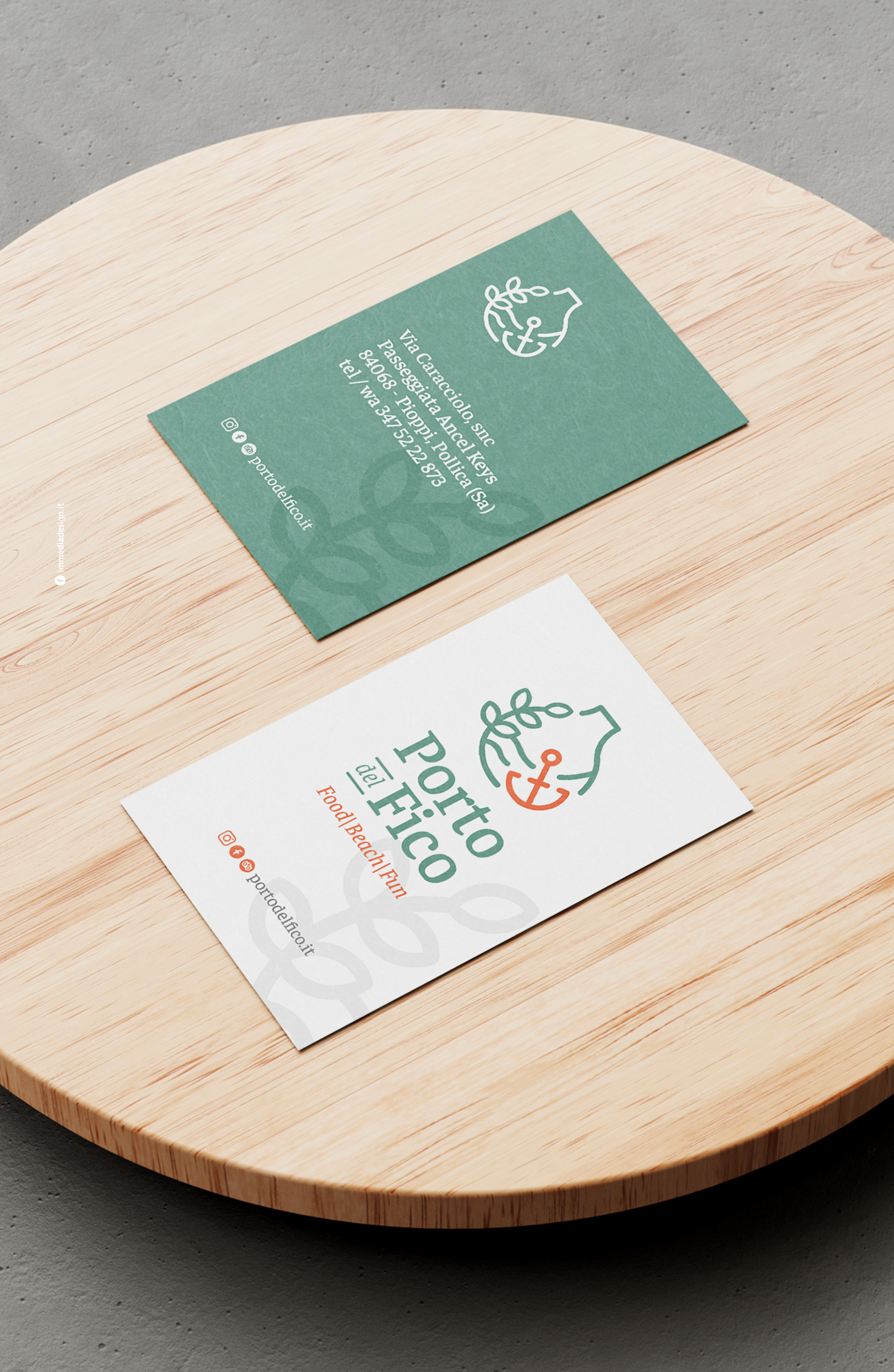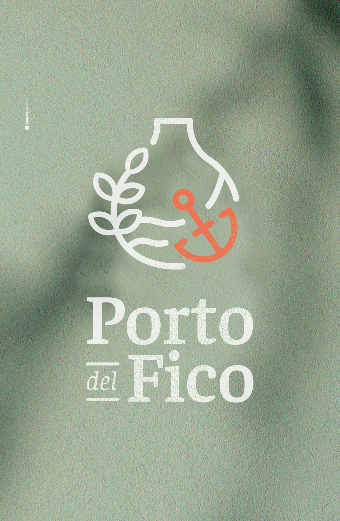 La ricerca per lo studio del marchio, pertanto, ha analizzato il territorio e le sue peculiarità, gli elementi della Dieta Mediterranea e le prelibatezze locali, concentrandosi in particolare sul fico bianco, vera delizia di questa meravigliosa terra. E come il fico bianco racchiude l’essenza del territorio cilentano, anche il marchio progettato si propone come scrigno comunicativo, racchiudendo in sé i due simboli principali: il porto rappresentato dall’ancora e la natura disegnata da un ramo di ulivo. Elementi che sottolineano la genuinità delle materie prime e lo stretto rapporto con il territorio, veicolando il messaggio in modo chiaro ed efficace: freschezza e località, mare e terra che si uniscono nel ristorante Porto del Fico.