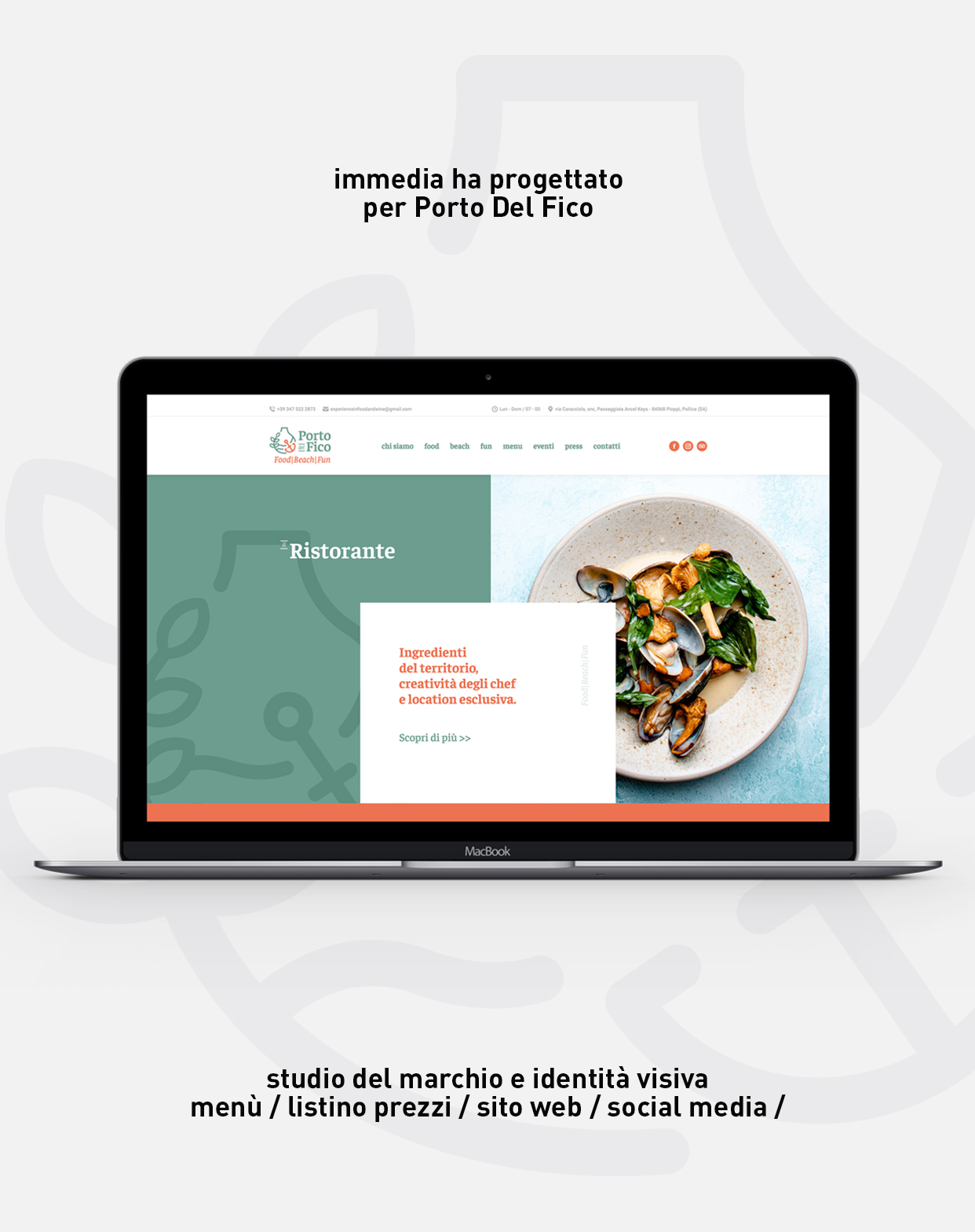Ristorante, lounge bar e pizza gourmet, il nuovo ristorante Porto del Fico ha scelto la creatività e la strategia dello studio Immedia, affidandoci la progettazione del marchio e la comunicazione per promuoversi sul territorio.