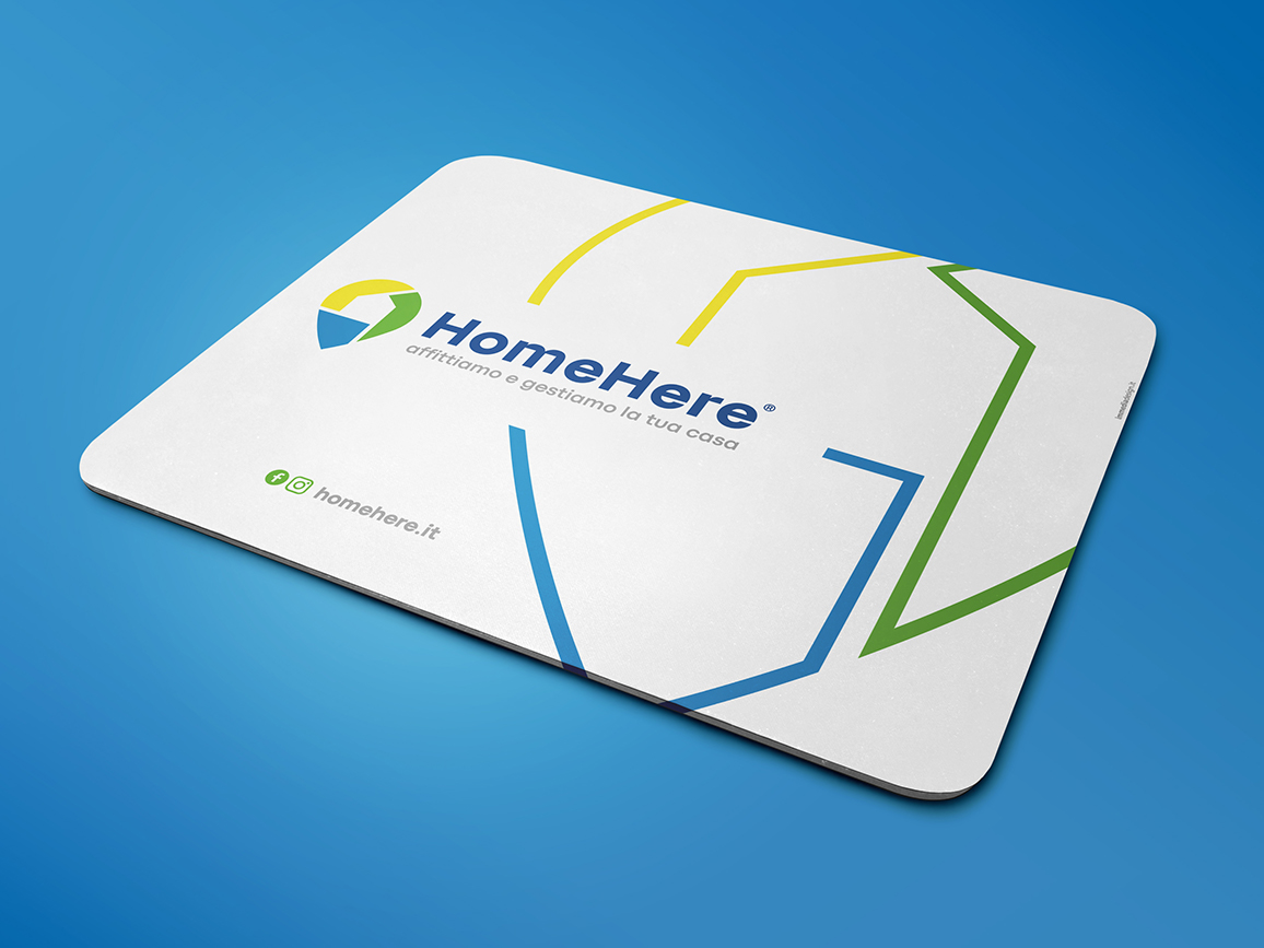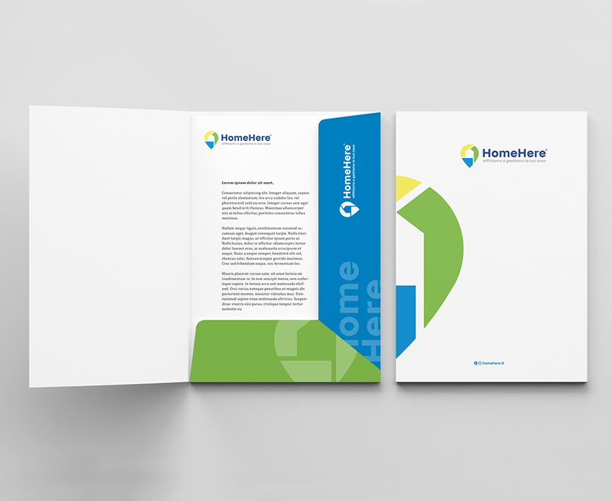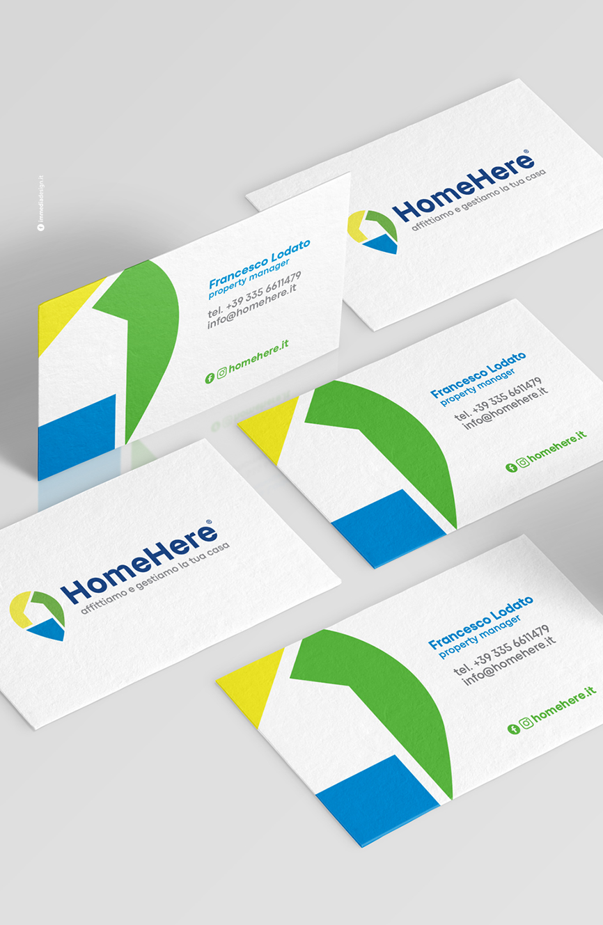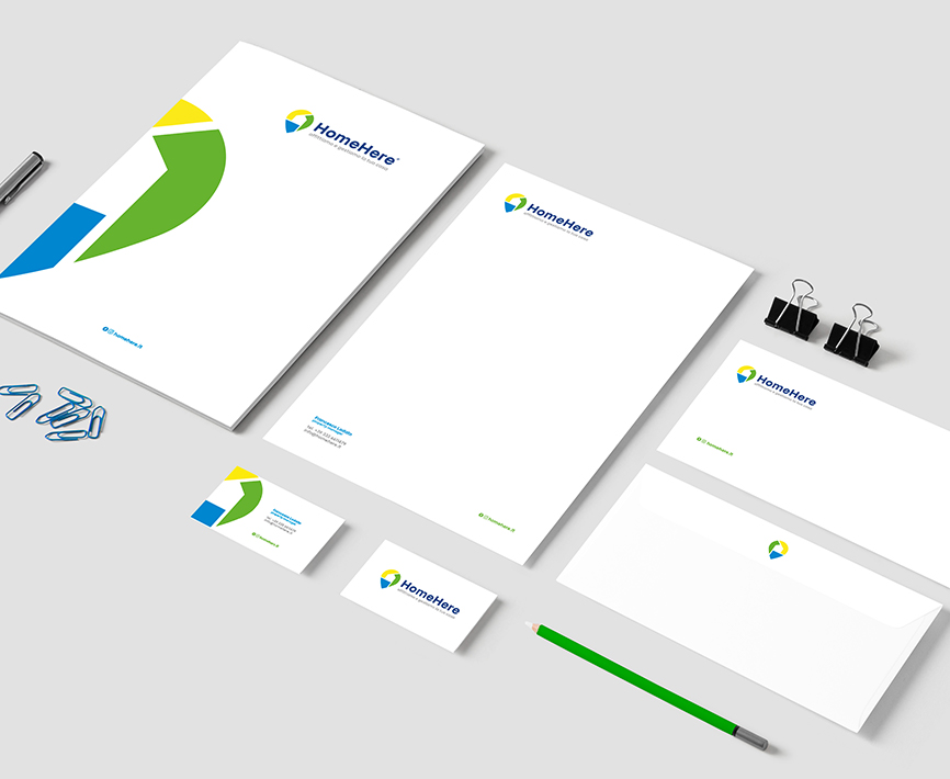 Allegro e colorato, energico e vivace, lo studio Immedia progetta una brand identity positiva e dinamica per Home Here.