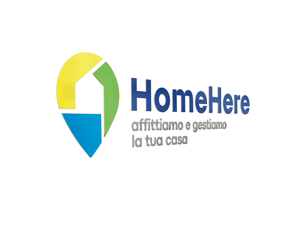 Una doppia anima quindi da tradurre in un’immagine unica, efficace e d’impatto, in linea anche con le richieste del cliente: trasmettere il concetto di centralità della casa e della localizzazione, indicare che “La casa giusta per te è qui” / “Home Here” appunto.