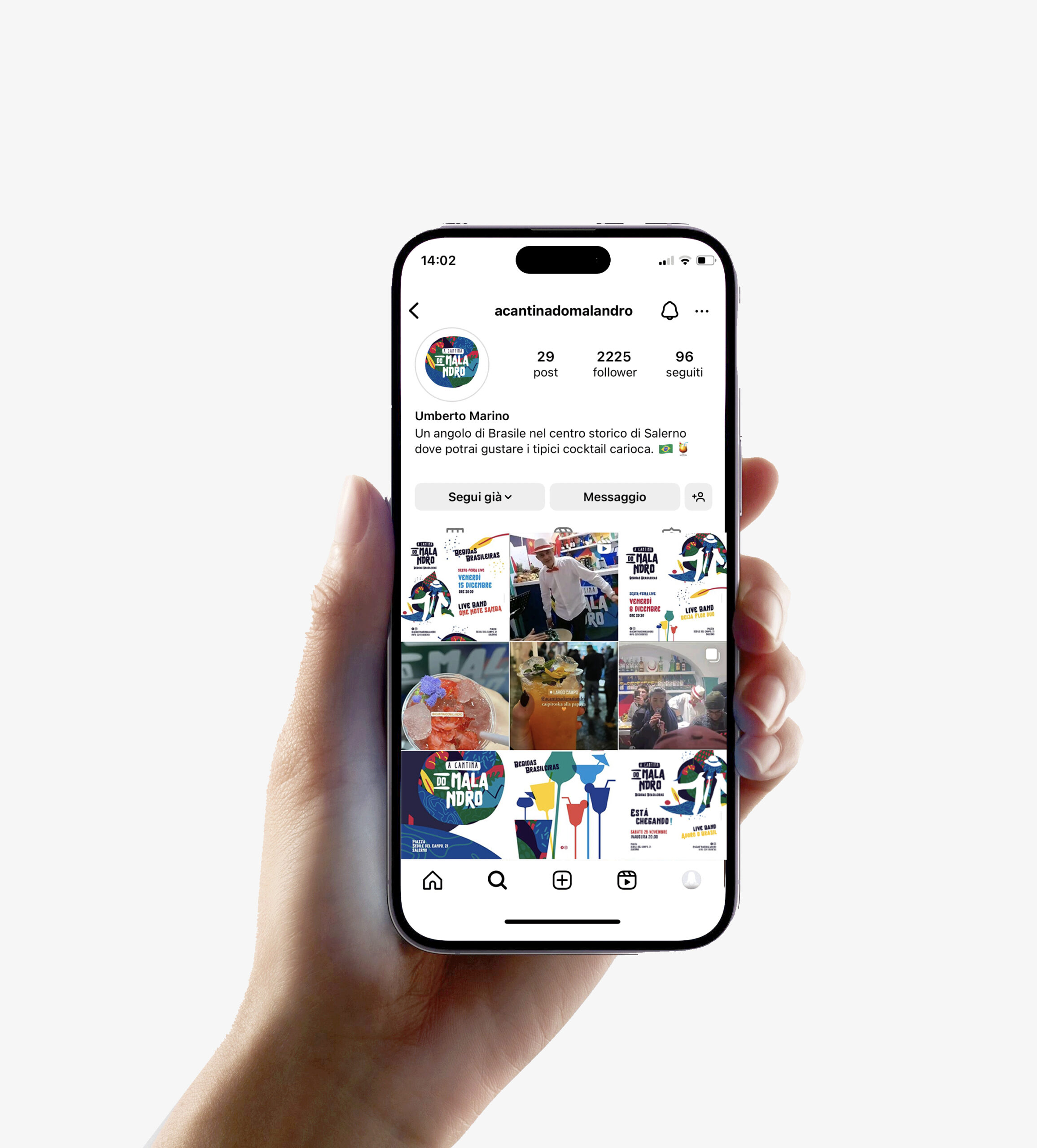 Il lavoro per La cantina del Malandro è stata la tipica sfida progettuale accettata e vinta da Immedia. Come sarebbe stato possibile far emergere e distinguere una nuova ed esotica realtà al centro di una zona già ricca e satura di locali di intrattenimento? La natura del locale poteva aiutarci, bebidas brasiliane e relativa musica non sono diffusissime ma si trattava di far rivivere un pezzo di Brasile al centro storico di Salerno. Dal marchio agli allestimenti, agli elementi di corporate e alle promozioni, Immedia ha messo in campo tutta la sua creatività per dare forma a un locale che si distinguesse per i mille colori tipici delle regioni sudamericane e che fosse una parte del variopinto mondo carioca trapiantato in un angolo di Italia. Il progetto ha quindi preso forma attraverso elementi tipici del panorama tropicale ma anche sfruttando le silhouettes multicolore dei cocktail tipici brasiliani.
