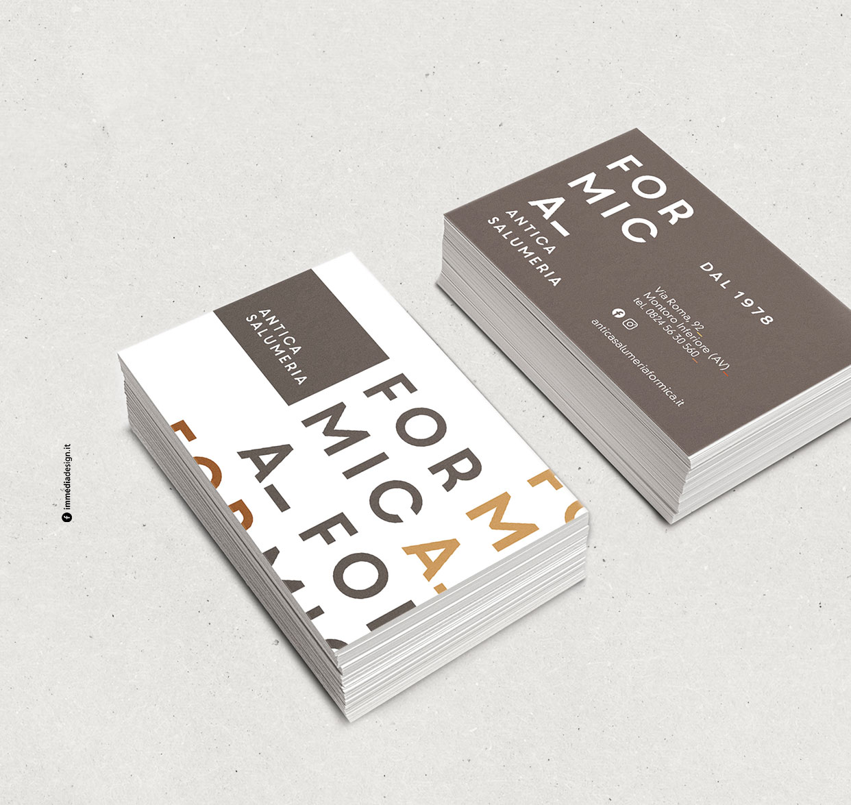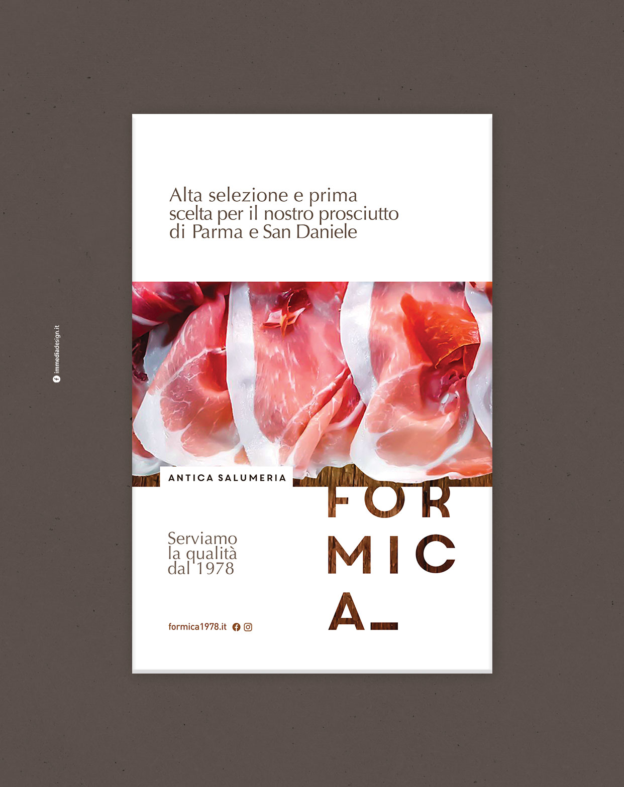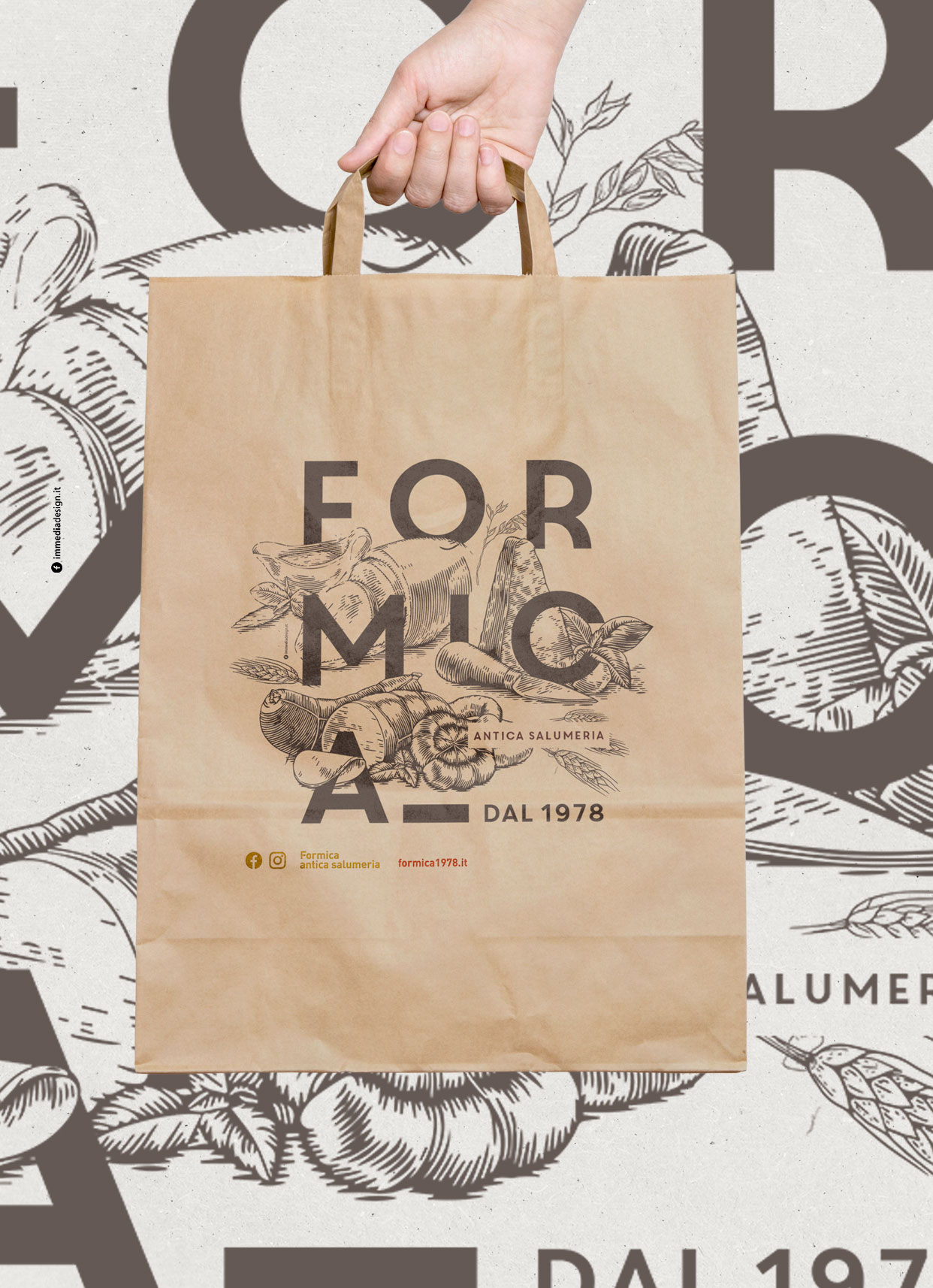 La ricerca del naming e lo studio del marchio ispirati dall’attività tradizionale, guardano inevitabilmente ai progetti futuri. Se la presenza storica, la tradizione e la famiglia si trasformano nel naming Antica Salumeria Formica, il marchio risponde alle future esigenze commerciali della brand identity.