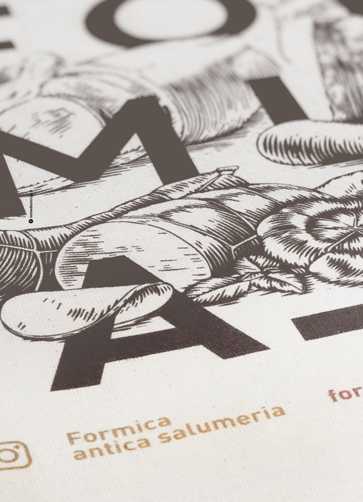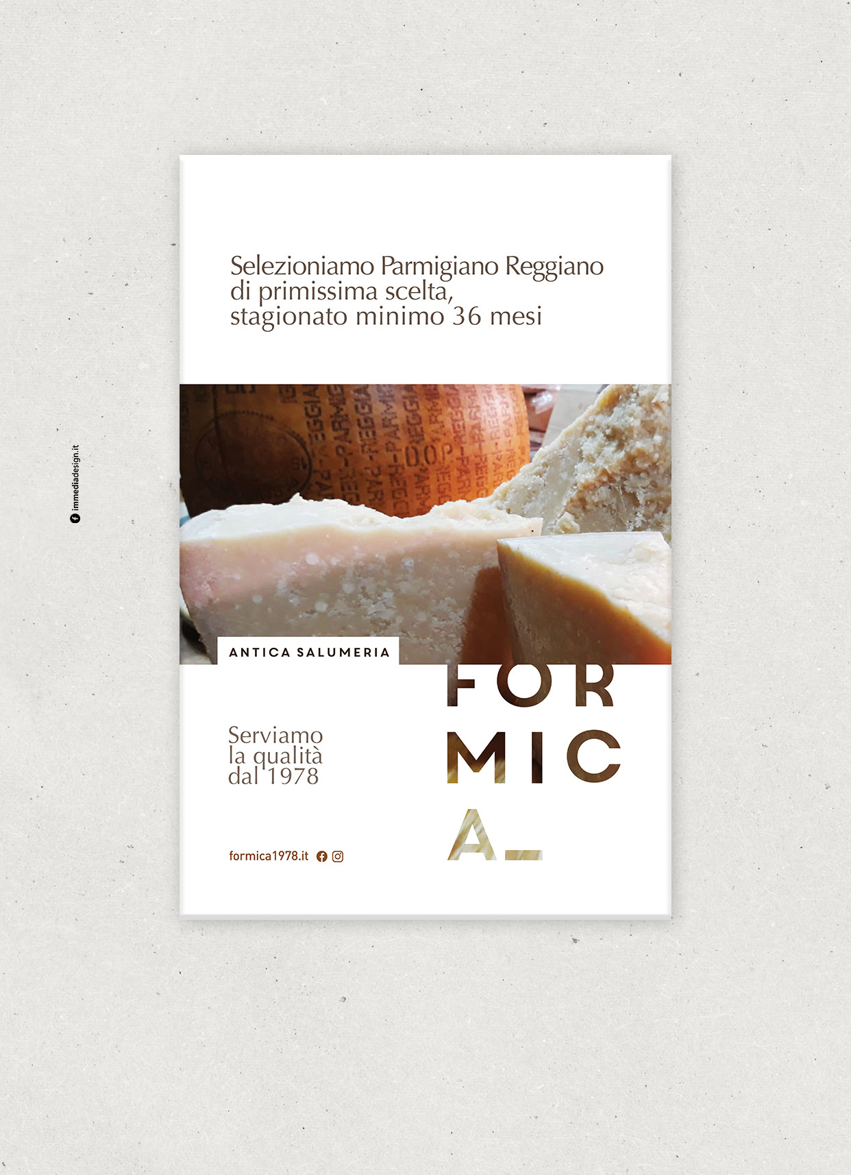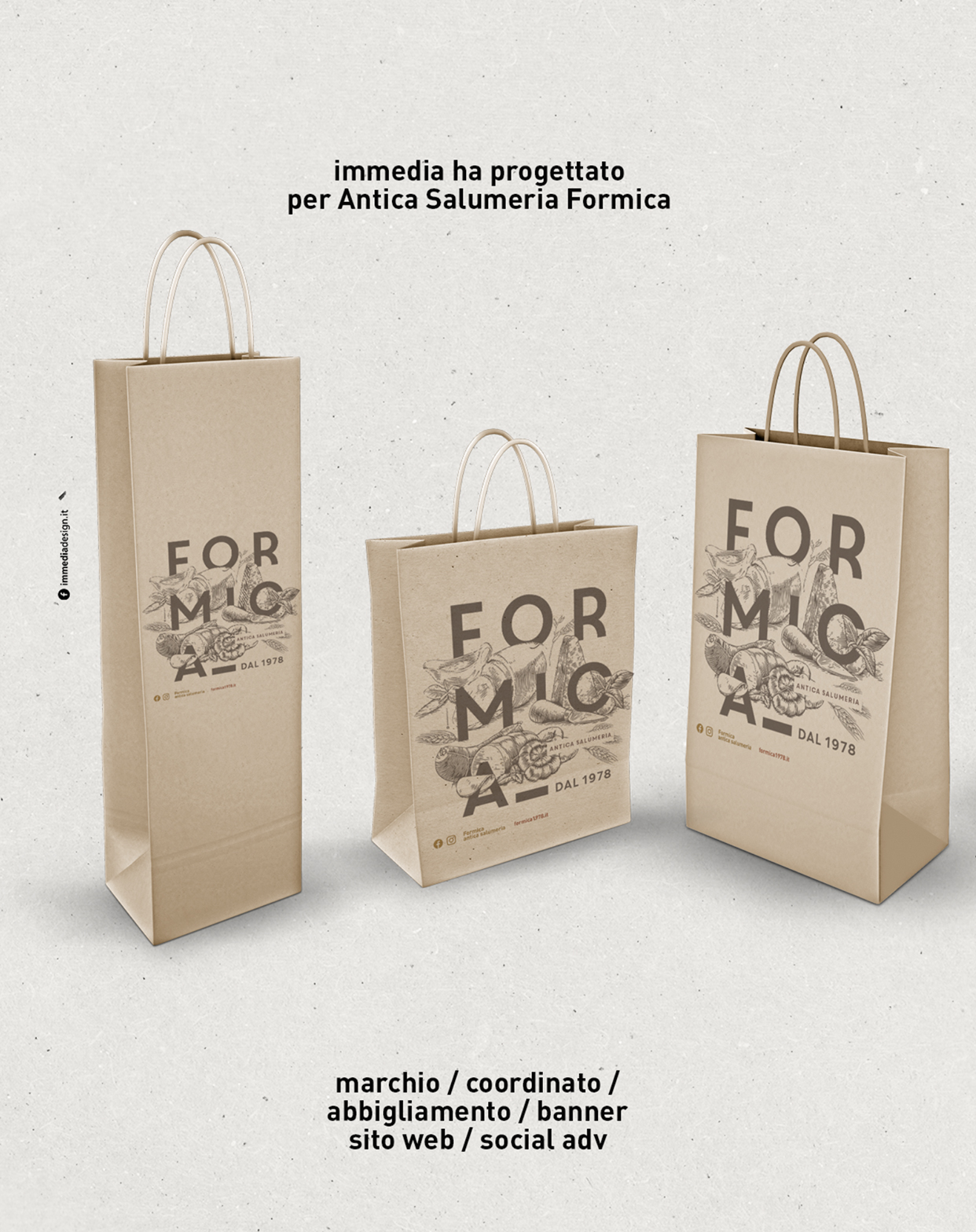 La ricerca del naming e lo studio del marchio ispirati dall’attività tradizionale, guardano inevitabilmente ai progetti futuri. Se la presenza storica, la tradizione e la famiglia si trasformano nel naming Antica Salumeria Formica, il marchio risponde alle future esigenze commerciali della brand identity.