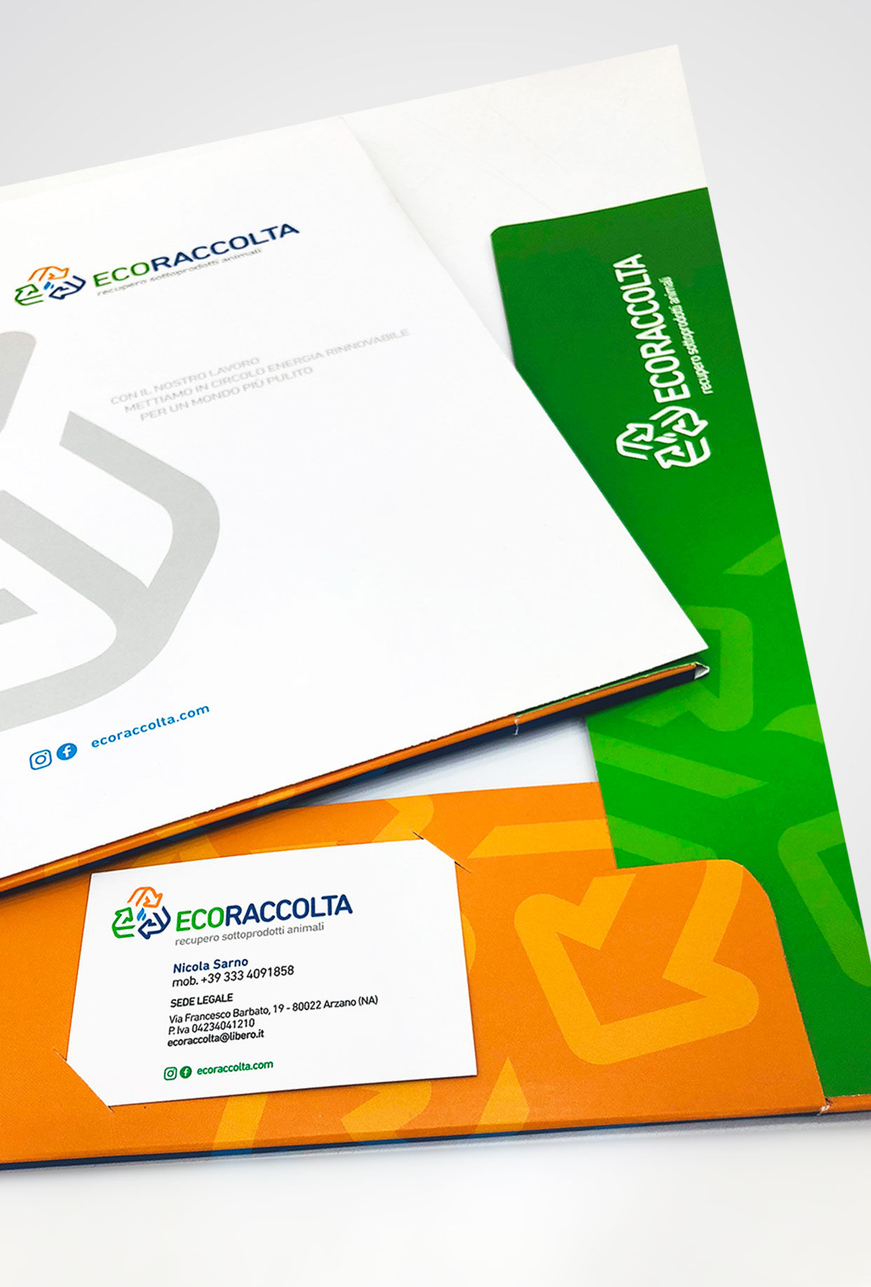 La progettazione del marchio di Ecoraccolta azienda attiva nel recupero e trasformazione di sottoprodotti animali in biogas per la produzione di energia elettrica, ha seguito un preciso iter comunicativo ispirato al riciclo e alla trasformazione.