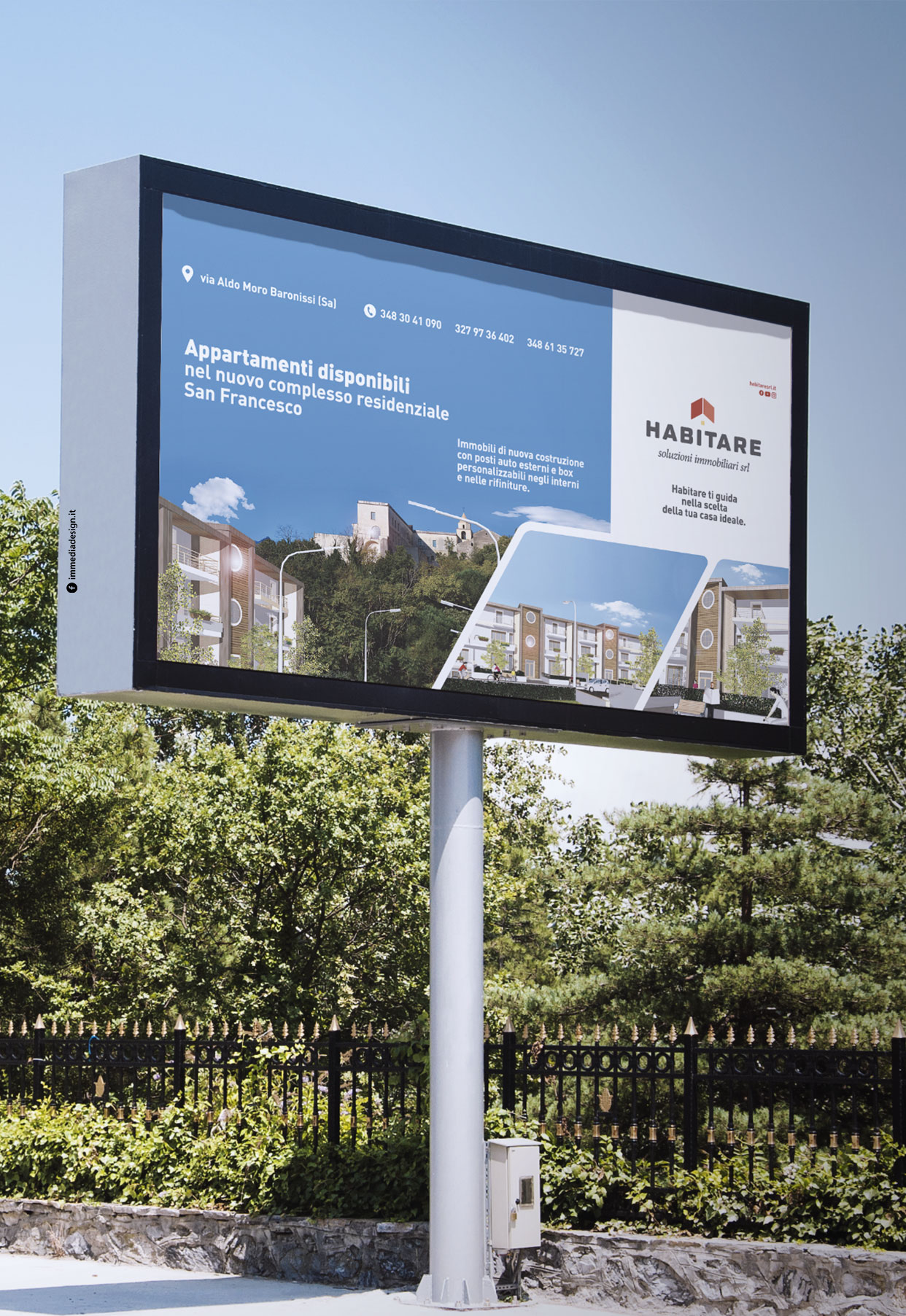 La scelta cromatica attinge ai toni del marrone e del rosso, combinazioni di colori ispirate ai mattoni e che si associano al settore immobiliare. Chiara e diretta, la tagline dichiara fin da subito il core business: Habitare propone in vendita le migliori soluzioni immobiliari.