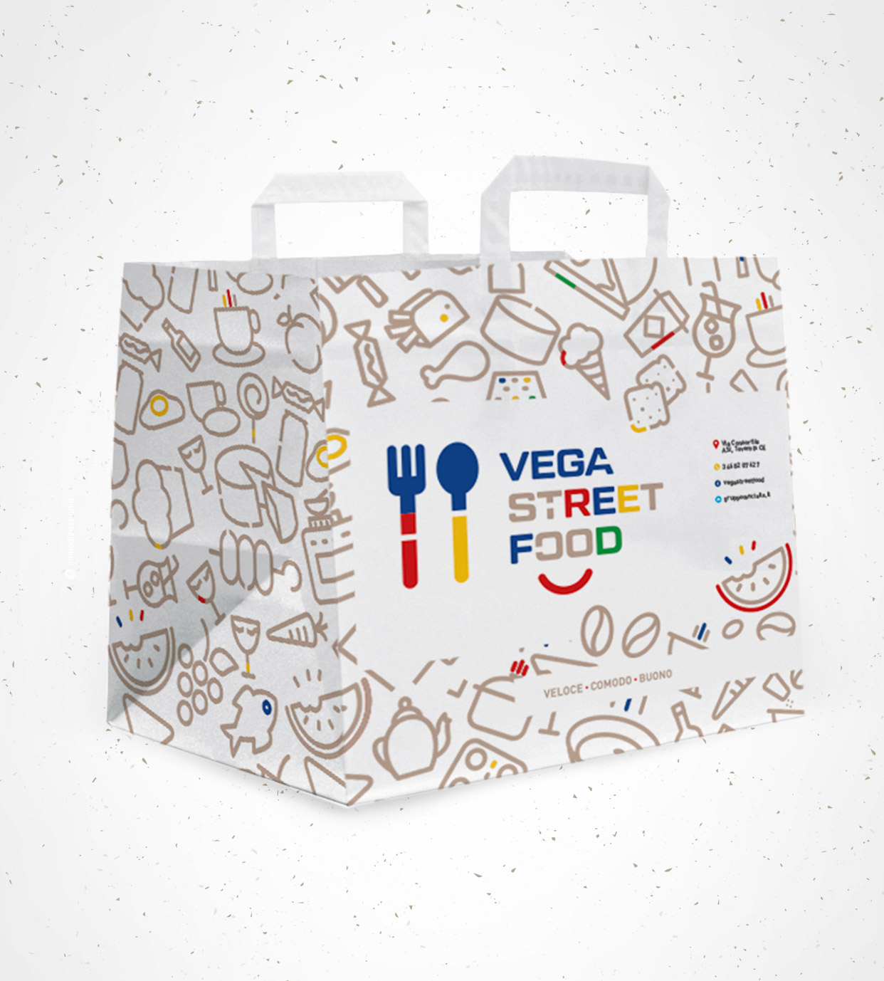 Questi gli obiettivi da raggiungere esposti dal cliente, punto di partenza per la progettazione del marchio di Vega Street Food punto bar, gastronomia e ristoro dove pranzare, prendere un caffè o semplicemente concedersi un momento di pausa.