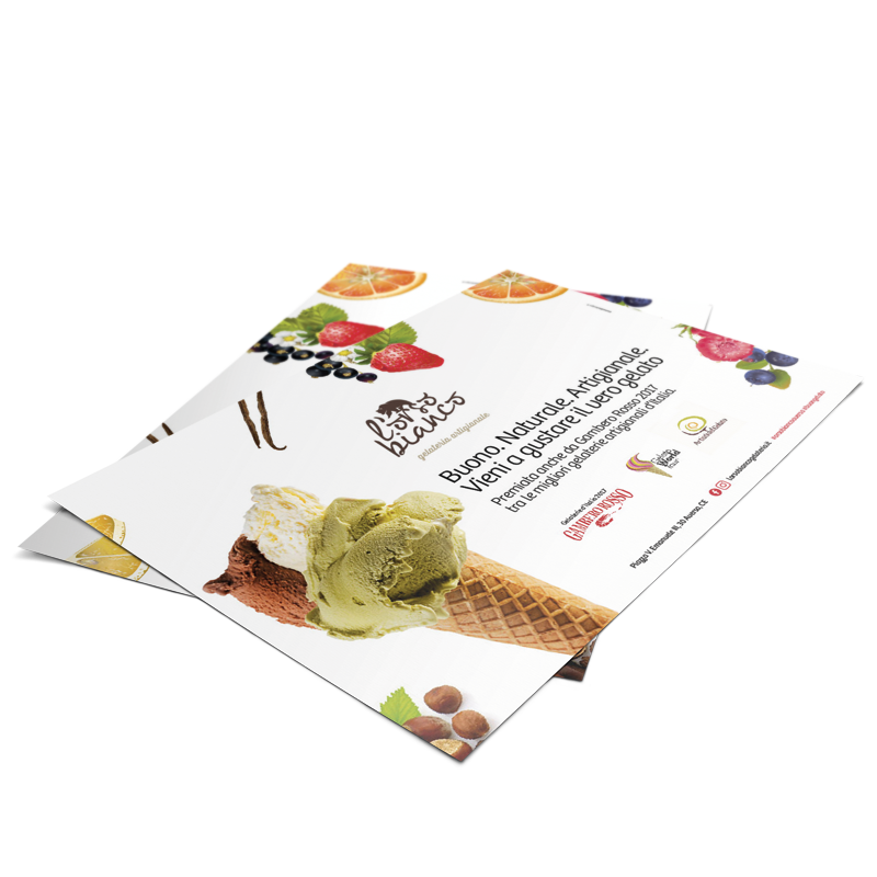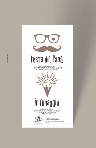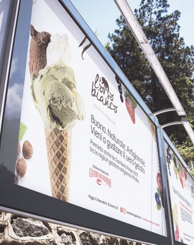 Le calde tonalità del nocciola e del cioccolato, ispirate alla naturalità degli ingredienti utilizzati, completano l’identità visiva della gelateria artigianale l’Orso Bianco.