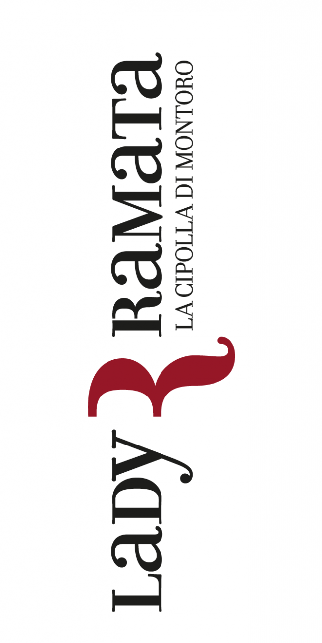 Una R color rame è l’elemento caratterizzante del marchio progettato per la cipolla di Montoro, la lady delle cipolle.