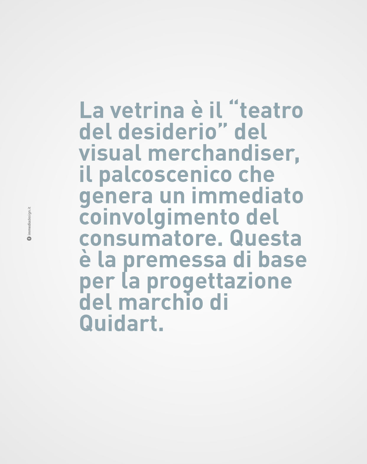 La vetrina è il “teatro del desiderio” del visual merchandiser, il palcoscenico che genera un immediato coinvolgimento del consumatore. Questa è la premessa di base per la progettazione del marchio di Quidart.
