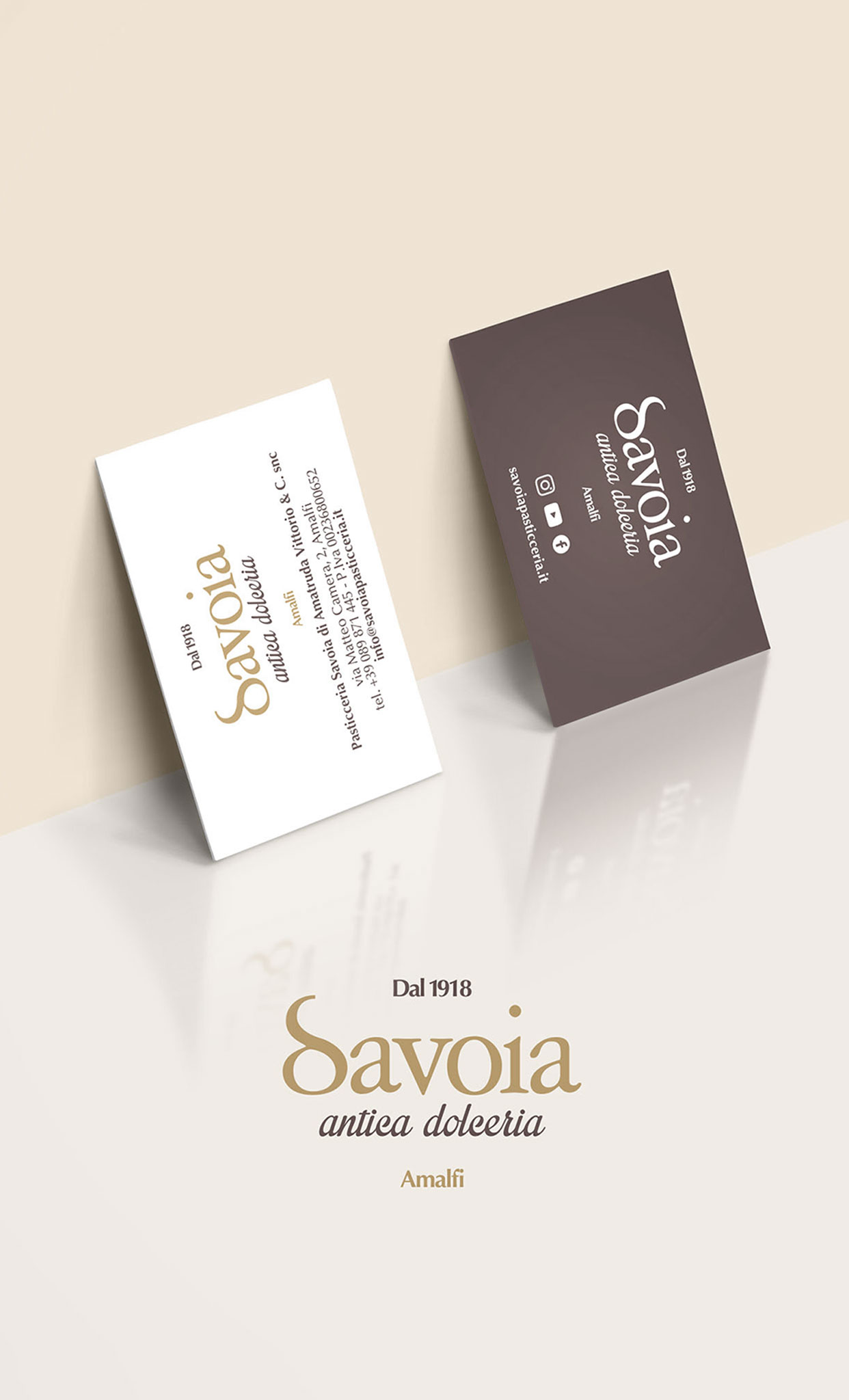 Storia, territorio costiero, tradizione pasticciera. Sono questi gli elementi chiave considerati per la progettazione del marchio di Savoia Pasticceria, antica dolceria che da’ il benvenuto ad Amalfi con il profumo delle sue specialità.